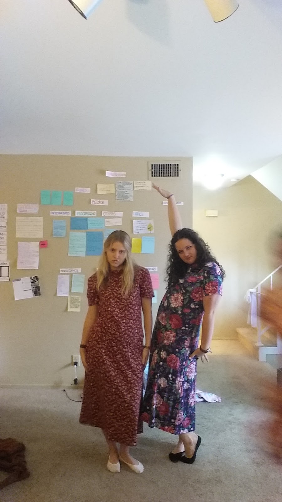 Today we didn't really have anything to do because we just had p-day four days ago, so we went to the goodwill and found some gems. See attached picture of sister Gillman and I. We will be sending this picture into Salt Lake as a possible new uniform for the Sister missionaries. Just kidding.